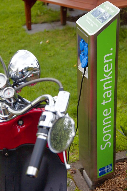 Elektrisch betriebene Zweiräder sind gerade in Innenstädten und bei Ausflugstouren besonders beliebt. Die Möglichkeit der parallelen Betankung von bis zu 4 Pedelecs oder Elektroroller machen die Säule zum idealen Auftankpartner.